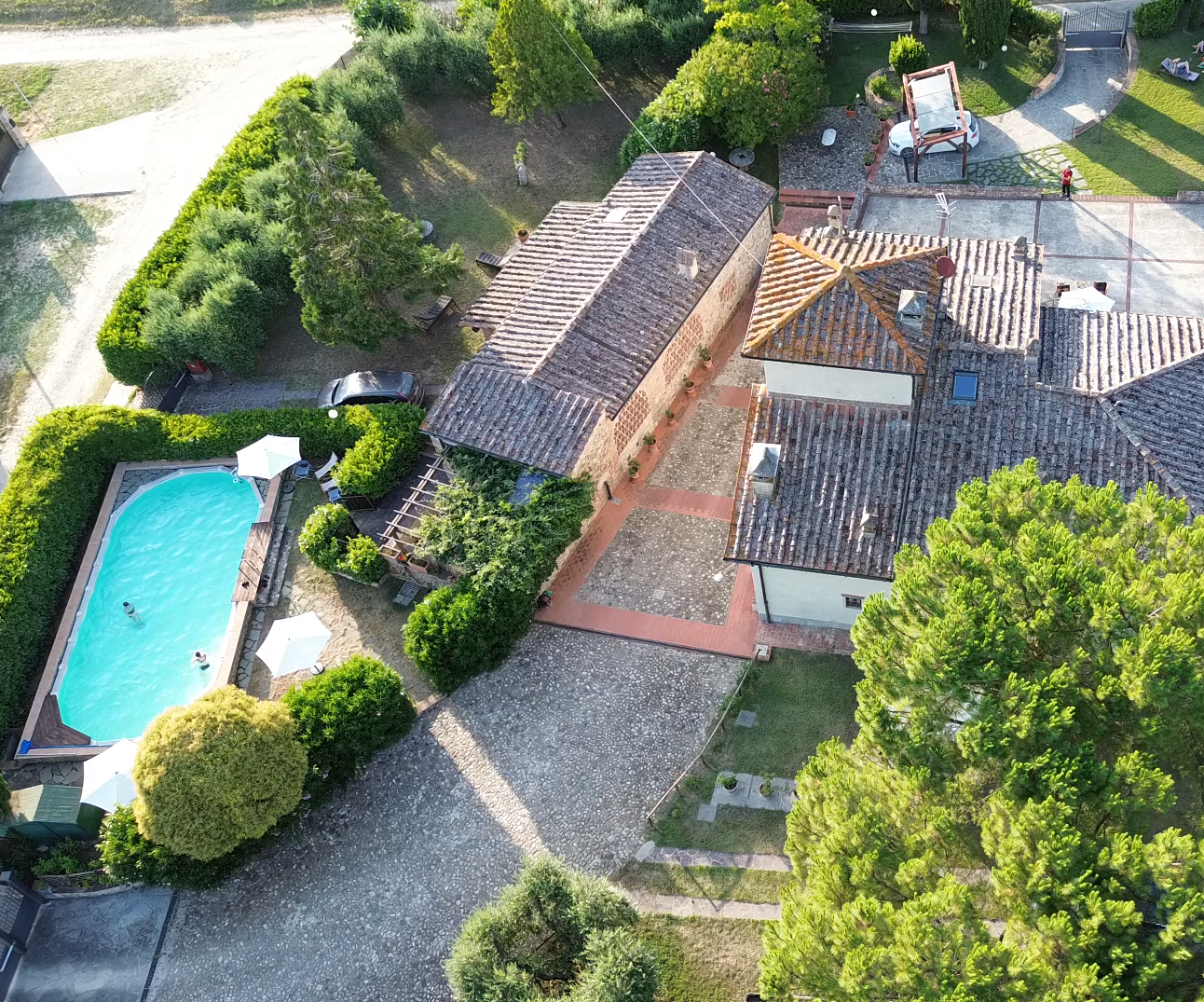 Uso escluso della villa divisa in tre appartamenti oltre fienile indipendente dal corpo centrale . Piscina privata per l intero compendio quando affittato un esclusiva .